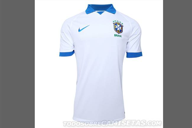 O site Todosobrecamisetas divulgou imagens da nova camisa da seleção brasileira para a Copa América de 2019, de 14 de junho a 7 de julho no Brasil. A peça toda branca, com as mangas azuis, que já é vendida em lojas no México, lembra as origens da seleção e a história da mudança.