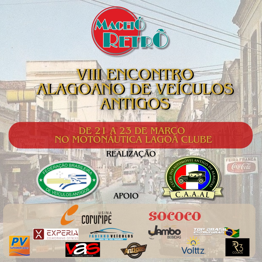 Realizado pelo Clube do Automóvel Antigo de Alagoas - CAAAL, o encontro deve reunir mais de 150 veículos antigos de clubes de Alagoas, Sergipe, Pernambuco, Bahia, Paraíba e outros estados.
