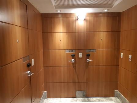 Porta do quarto de hotel onde MC Kevin estava quando caiu da varanda, no domingo Foto: Extra / Fabiano Rocha