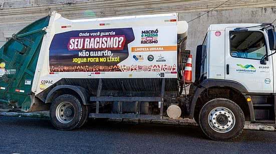 Caminhões coletores de lixo estão circulando pelas ruas da capital com uma mensagem de combate ao racismo estrutural. A ação é inédita no Brasil e faz parte da campanha Maceió é Massa Sem Racismo, idealizada pela Prefeitura de Maceió, em parceria com o Instituto Raízes de Áfricas e o apoio da Autarquia de Desenvolvimento Sustentável e Limpeza Urbana (Alurb).