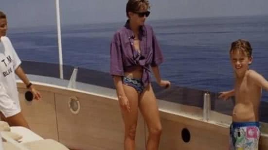 Na imagem, ela aparece em um iate ao lado do designer Valentino e do príncipe Kyril, de Preslav, na Bulgária. Diana está de biquíni estampado, uma camisa azul e óculos de sol. "Aqui dois momentos de amizade com ela, princesa Diana", escreveu o empresário, na legenda da publicação.
