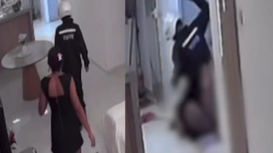 Na sequência, as imagens já mostram Inaianne sendo derrubada e esfaqueada. A funcionária ainda tenta lutar para se defender, mas Jean desfere diversas facadas contra ela. Após o crime, ele deixa a residência andando lentamente. As imagens são fortes: