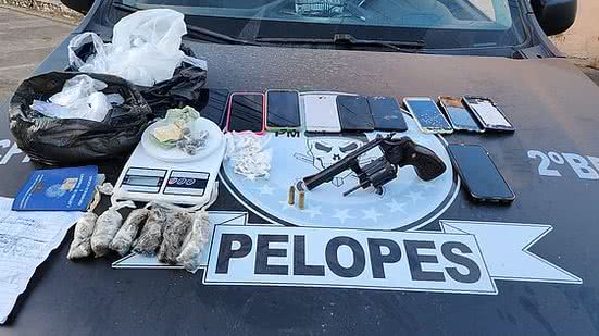 Além das prisões, foram apreendidos um revólver calibre 38 com duas munições, 95 gramas de maconha, 40 gramas de crack, 11 celulares, uma balança de precisão e embalagens plásticas.