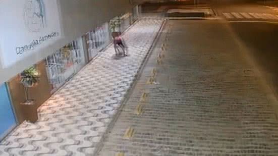 As câmeras do circuito de segurança da loja captaram, na madruga desta segunda-feira, 12, o momento em que um homem se aproxima da loja e usa uma pedra para quebrar vidraça. Depois de algumas tentativas, ele consegue entrar na loja para furtar. Veja: