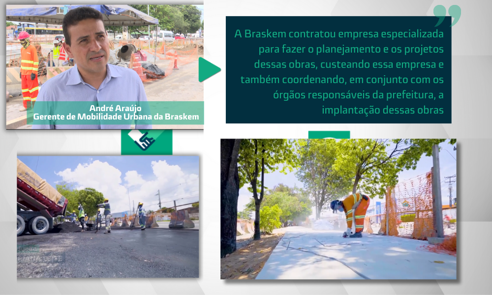 “A Braskem contratou empresas especializadas para fazer o planejamento e os projetos, custeando essas empresas e coordenando, em conjunto com os órgãos responsáveis do Município, a implantação dessas obras”, explica André Araújo, Gerente de Mobilidade Urbana da Braskem. A reportagem visitou os principais canteiros de obra.