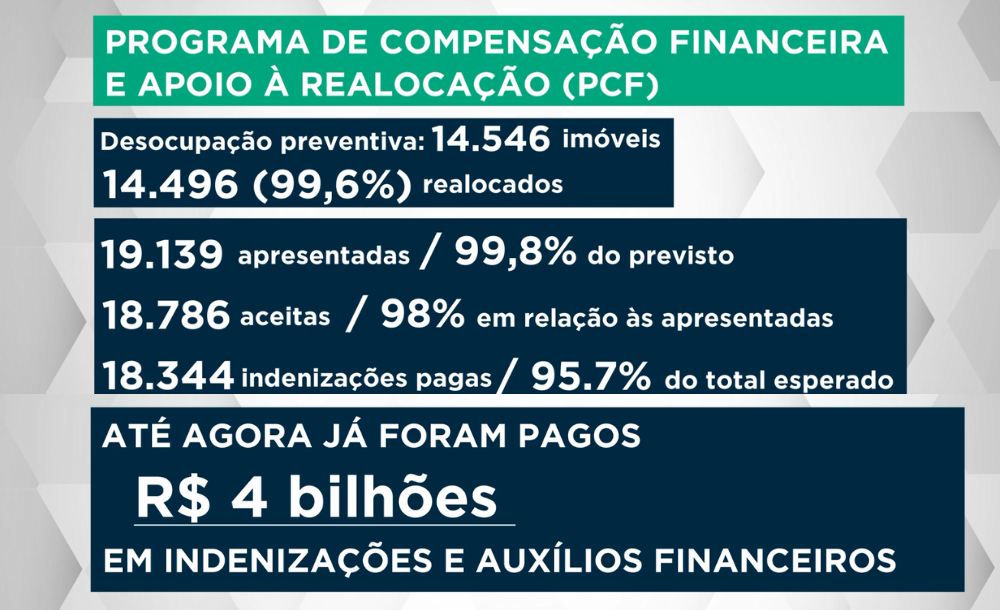Antes de começar as obras, a Braskem colocou em prática o Programa de Compensação Financeira e Apoio à Realocação (PCF), responsável pela realocação preventiva dos moradores e indenizações.