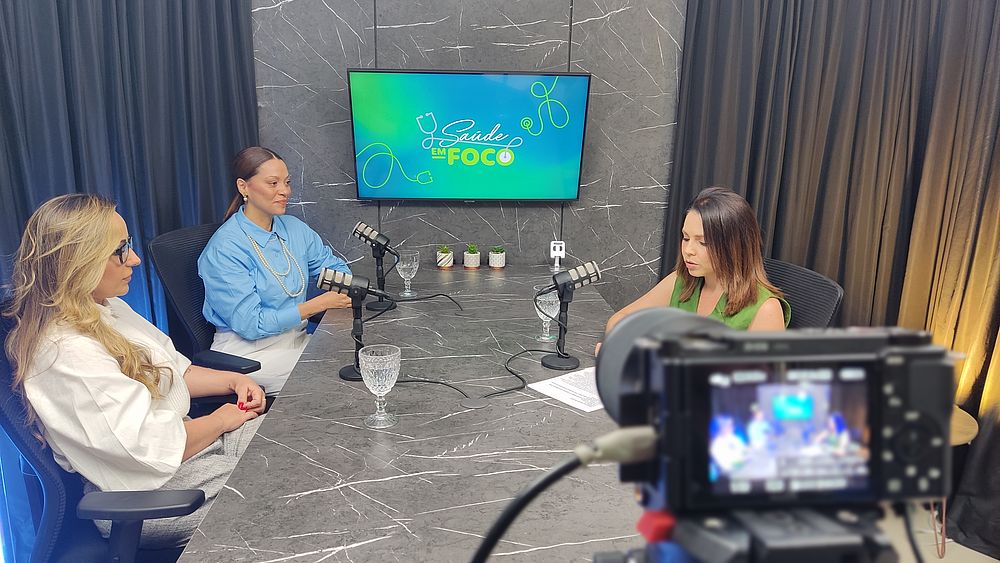 A empresária Rosi Barros, a psicóloga Janaína Diniz e a apresentadora Beatriz Lacerda na gravação do Videocast Saúde Em Foco