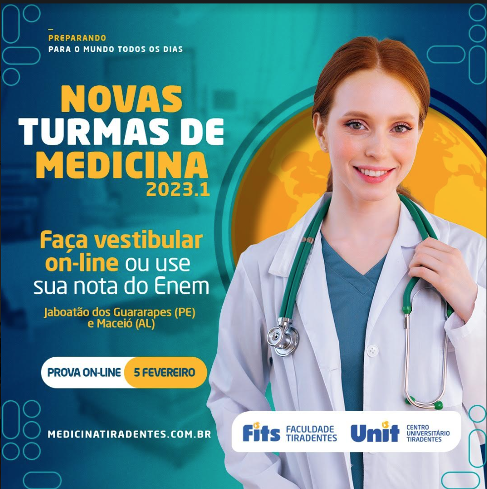 O Centro Universitário Tiradentes - Unit Alagoas e a Faculdade Tiradentes - Jaboatão dos Guararapes estão com inscrições abertas para novas turmas de Medicina, promovendo o preenchimento de 70 vagas em Alagoas e 90 em Jaboatão-PE, com início das aulas no próximo mês de fevereiro. As inscrições acontecem exclusivamente pelo site www.medicinatiradentes.com.br, no período de 05 a 29 de janeiro.
