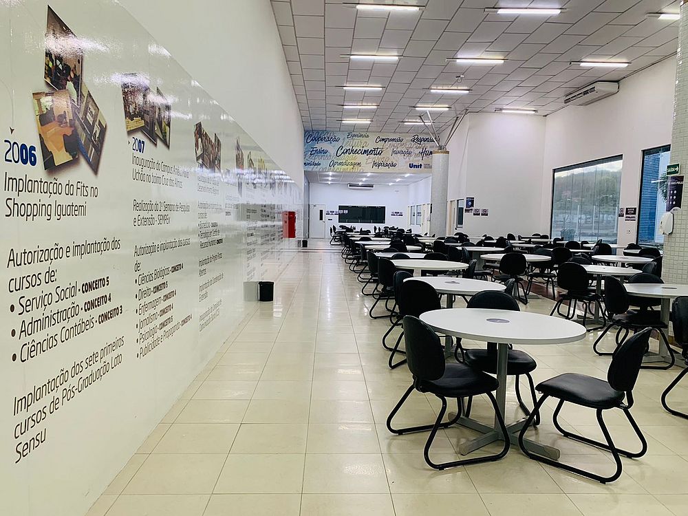 Área de estudos da Biblioteca Central da Unit Alagoas; ao lado, os marcos históricos da unidade desde sua fundação (Acervo/Grupo Tiradentes) |