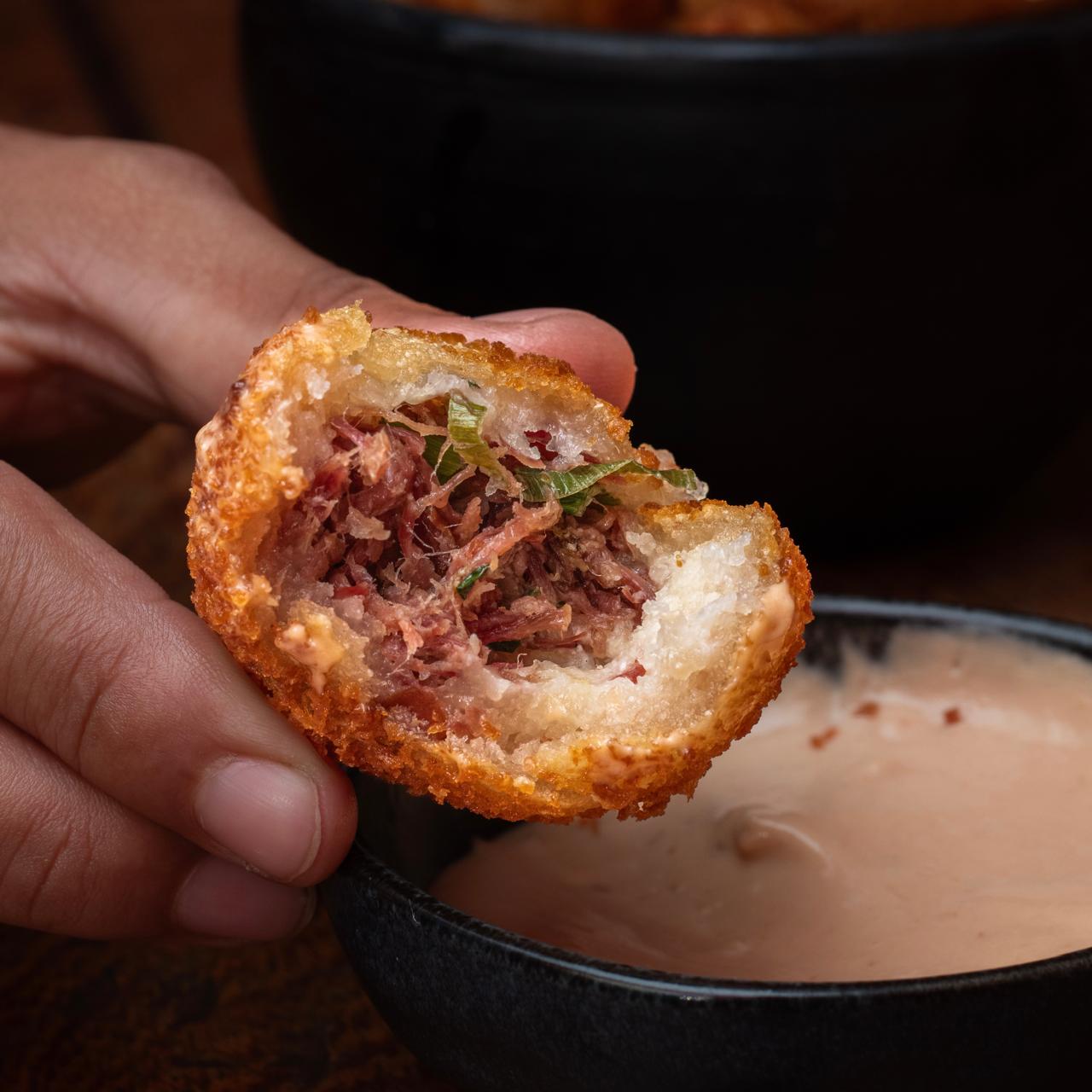 Bolinho de feijoada um clássico da 082 Feijoada será uma das estrelas da festa de 4 anos