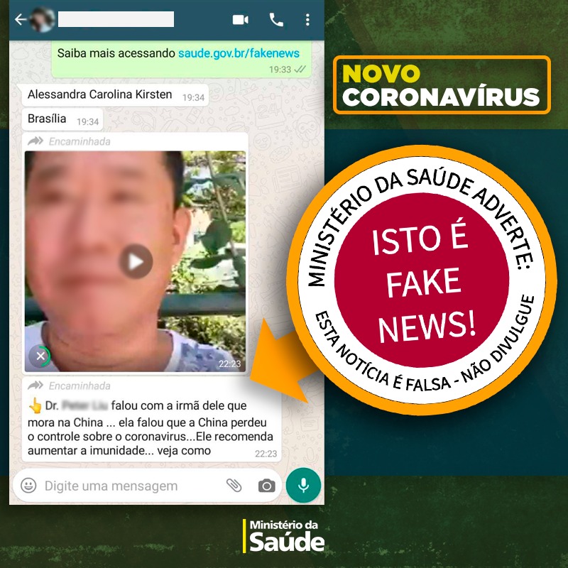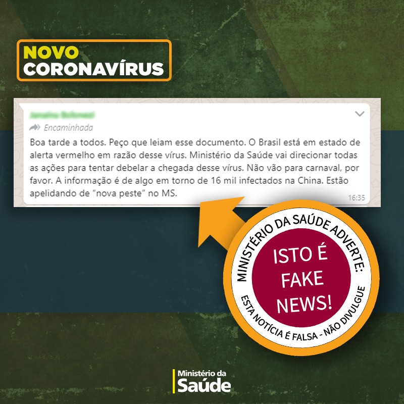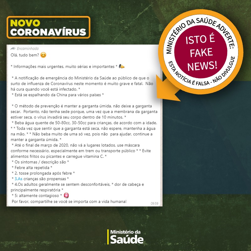 Notificação emergencial do Ministério da Saúde sobre novo coronavírus - É FAKE NEWS!