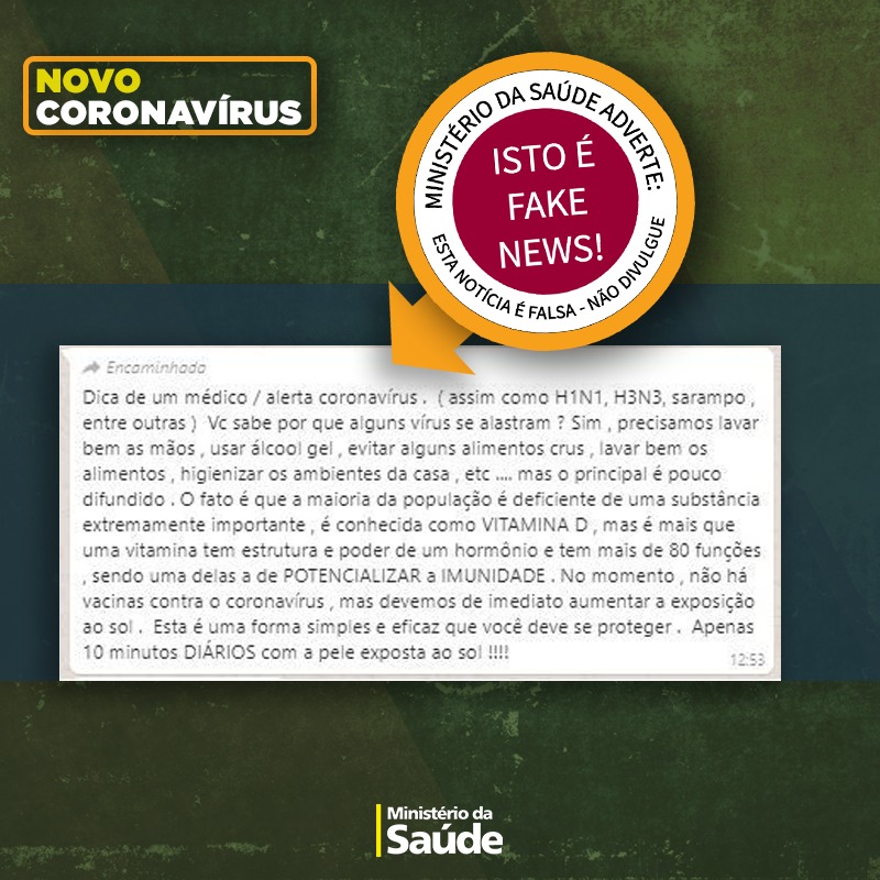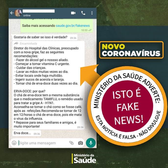 E para combater fake news, nada melhor do que informações oficiais. O TNH1 separou 10 fake news desmentidades pelo Ministério da Saúde, que criou uma página especial exclusivamente para desmenstir este e outros boatos que circulam nas redes socais e aplicativos de mensagem.