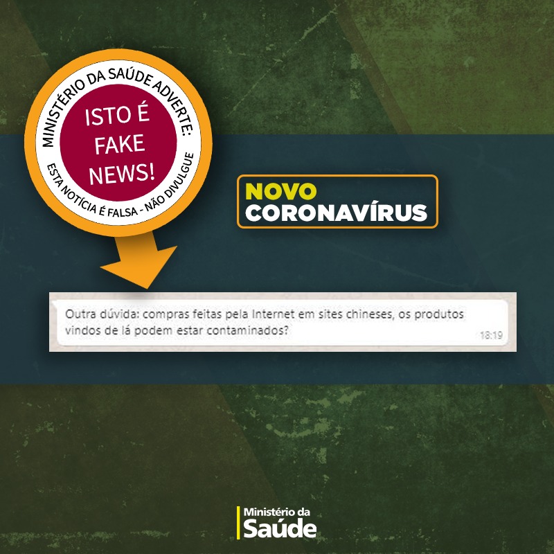 Esta informação não é verdadeira! Não há nenhuma evidência que produtos enviados da China para o Brasil tragam o novo coronavírus.