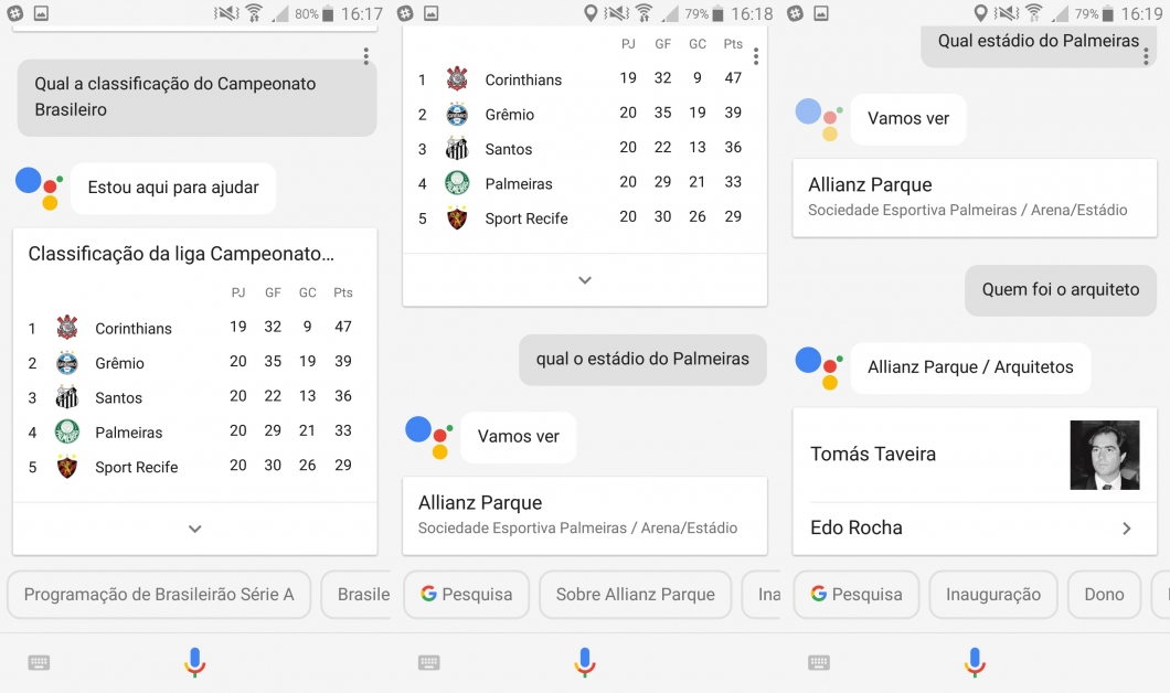 O meu vô vai gostar bastante dessa: você pode perguntar muita coisa sobre futebol, como classificação, programação do campeonato e mais informações sobre um time, como seu atacante, estádio ou mascote.