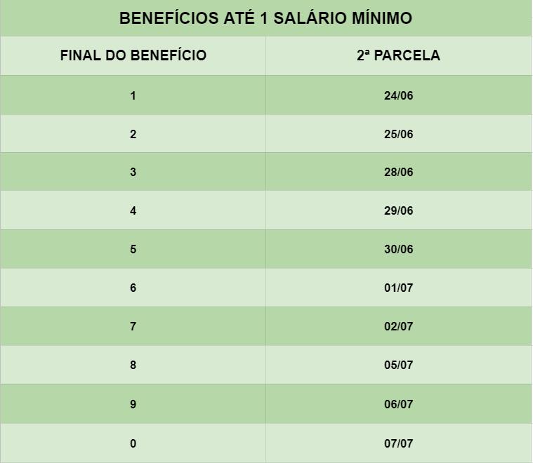 Para os beneficiários com até um salário, haverá pagamento nos dias 28, 29, 30, 1º e 2, com finais 3, 4, 5, 6 e 7, respectivamente.