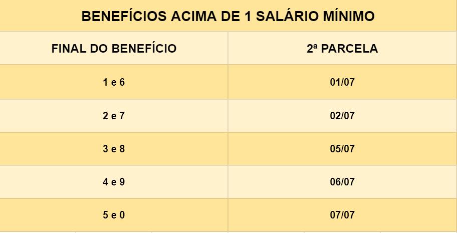 Serão depositados valores para os segurados que recebem um ou mais salários mínimos. A data é determinada de acordo com o número final do benefício, sem levar em conta o dígito verificador.