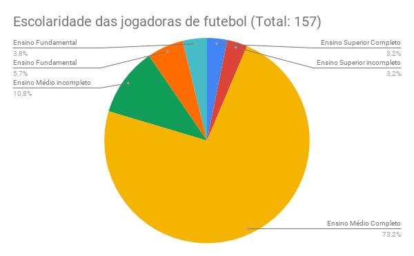 A maioria possui o Ensino Médio completo: 115 jogadoras (73,2%).