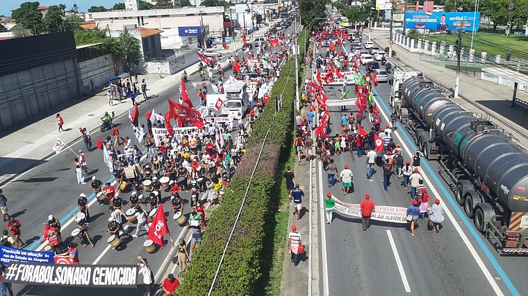 Milhares de manifestantes fazem protestos contra o governo do presidente Jair Bolsonaro (sem partido) hoje em diversas cidades do país, como Rio de Janeiro, Brasília e Recife. No centro do Rio, os protestos fecharam três das quatro vias da avenida Presidente Vargas nos quatro quilômetros entre o monumento a Zumbi dos Palmares e a igreja de Nossa Senhora da Candelária.