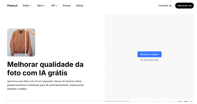 Por último na nossa lista está Pixelcut. Se quer melhorar a qualidade das suas imagens, Pixelcut também é uma ótima escolha. Ele resolve bem problemas comuns como fotos borradas e pixeladas. E é importante saber que geralmente não mexe nas cores ou no contraste das suas imagens.