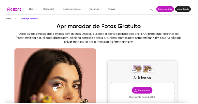 Embora Picsart não permita melhorar várias fotos ao mesmo tempo, você pode trabalhar com uma imagem de cada vez. Para quem é mais técnico ou para empresas, Picsart oferece também uma interface de programação para usar a ferramenta de forma mais avançada.