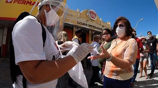 Para reforçar a prevenção contra o novo coronavírus durante a Fase Laranja do Protocolo Sanitário de Reabertura do Comércio, em Maceió, o Governo de Alagoas segue entregando kits de máscaras de proteção em locais e bairros mais populosos da cidade. Essa é mais uma ação realizada pela Secretaria de Estado do Desenvolvimento Econômico e Turismo (Sedetur), por meio do projeto Proteção Para Todos.