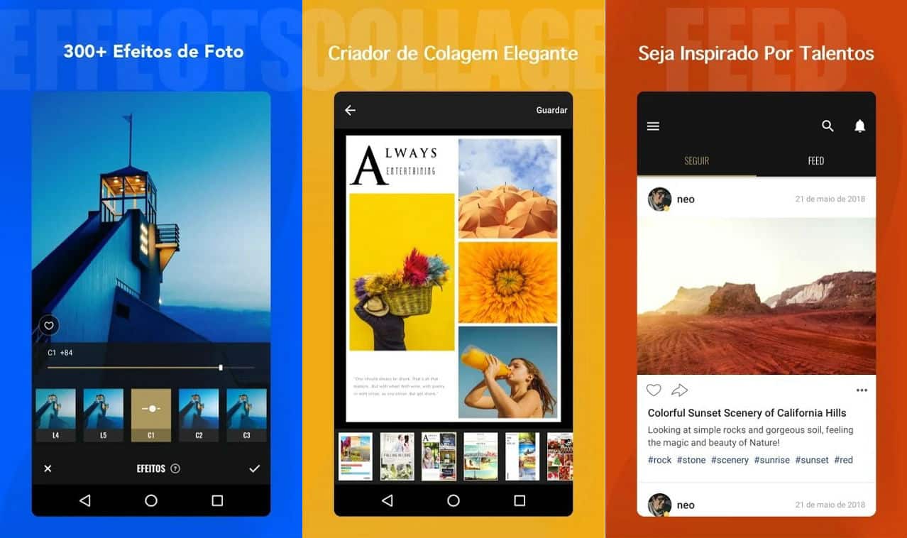 Com alguns recursos avançados, o PicsArt Photo Studio é uma boa opção para quem também quer um aplicativo com funcionalidades focadas na interação entre seus usuários. Ele conta com ferramentas interessantes para captura, edição de imagens e até mesmo a criação de montagens.
