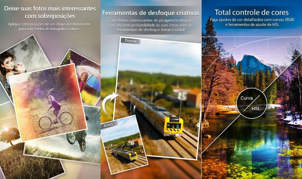 Photoshop é praticamente sinônimo de editor de imagens, e felizmente existe uma versão bem competente do aplicativo no Android e iPhone. No app Express, ele teve suas funções simplificadas para se encaixarem melhor no uso de um celular. Mas, ainda assim, ele é capaz de agradar tanto os usuários mais exigentes quanto àqueles que buscam funcionalidades básicas.