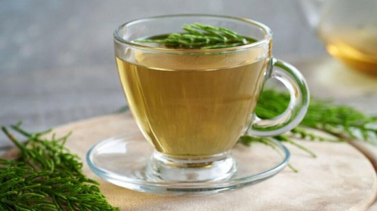 Em uma panela, coloque a água e leve ao fogo médio para ferver. Adicione o hibisco, a canela em pau e a cavalinha e ferva por 5 minutos. Desligue o fogo, coe o chá e sirva em seguida.