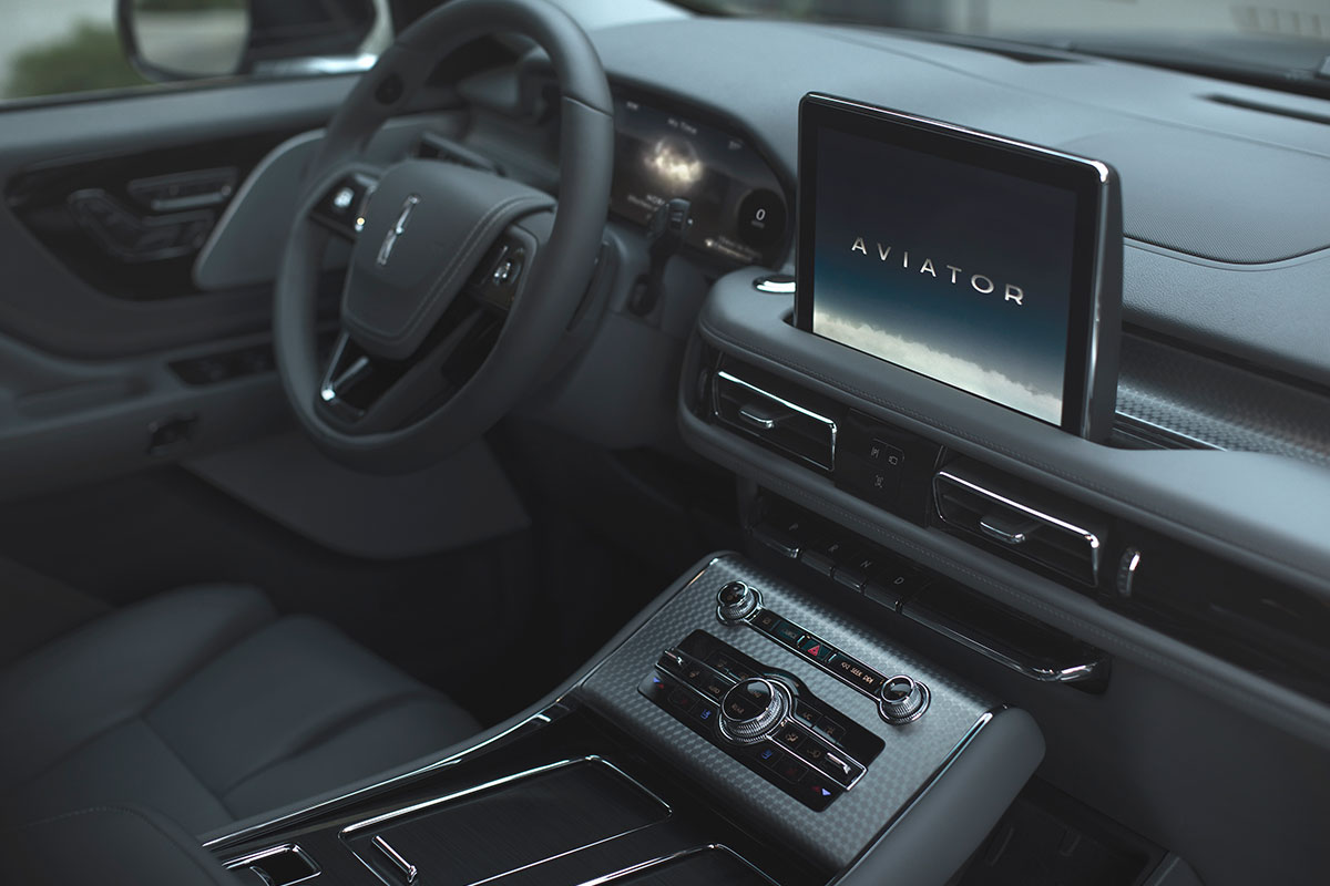 Na cabine, o design do Aviator tem como proposta criar um santuário de tranquilidade. Os bancos dianteiros contam com ajuste elétrico em 30 direções e função de massagem. O sistema de áudio Revel Ultima 3D, com 28 alto-falantes, recria a experiência sonora de uma sala de concerto. E os seus cerca de 25 avisos sonoros foram criados especialmente pela Orquestra Sinfônica de Detroit.