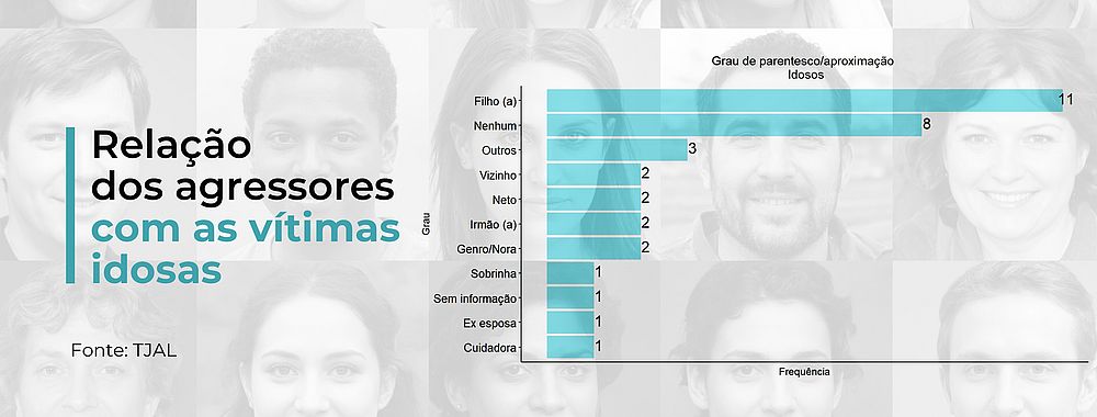 Também entre os idosos, a maioria dos crimes ocorre no âmbito doméstico (62%). A maior parte é praticada pelos filhos e geralmente envolve delitos patrimoniais. Nesse contexto, o gênero feminino é, igualmente, o mais vitimado (65%).