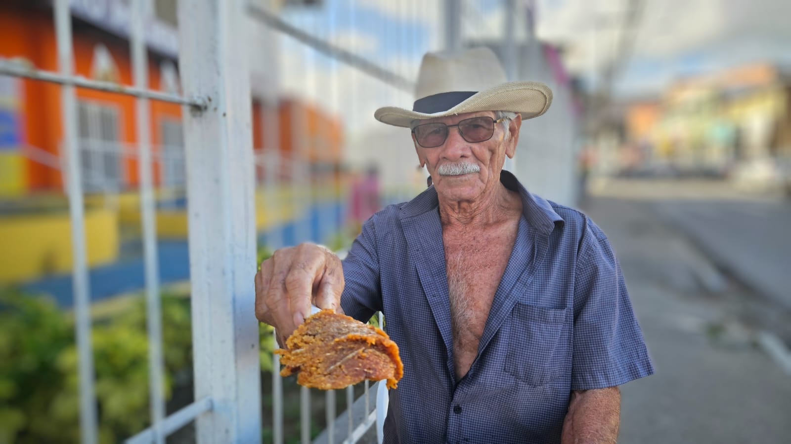 Das 13h até às 16h, de frente no Ginásio Poliesportivo Arivaldo Maia – R. Cleto Campelo, S/N (rua principal do Jacintinho) –, o seu José Açucena da Silva, natural de Murici, abre seu tabuleiro para vender a mais doces das tradições do Nordeste, o quebra-queixo. Aos 80 anos, sua rotina é acordar cedo para ralar o coco, misturar com açúcar, em seguida despejar os ingredientes no tacho de cobre e cozinhar no fogo à lenha. “Menina, não sei ficar parado, além do dinheiro extra é também minha diversão”, diz seu Açunena, pai de nove filhos, todos, ao contrário dele, frequentaram a sala de aula.
