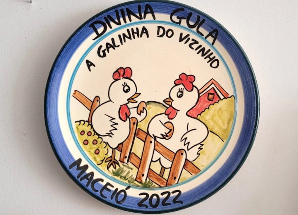 No Divina Gula, a galinha é desfiada e misturada no arroz com caldo do cozimento da ave, o que fica bem gostoso. E quem come a galinha do vizinho ainda leva para casa o prato de cerâmica da Boa Lembrança, como manda a tradição de 28 anos da associação.