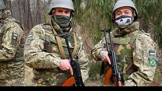 Em um dos primeiros registros nas redes sociais, o paulista André Kirvaitis e o pernambucano Leanderson Paulino, ambos de 27 anos e com residência fixa na Europa, posaram com farda militar, carregando fuzis, em uma área de mata na Ucrânia — o paradeiro é mantido sob sigilo para evitar que as forças russas descubram a localização.