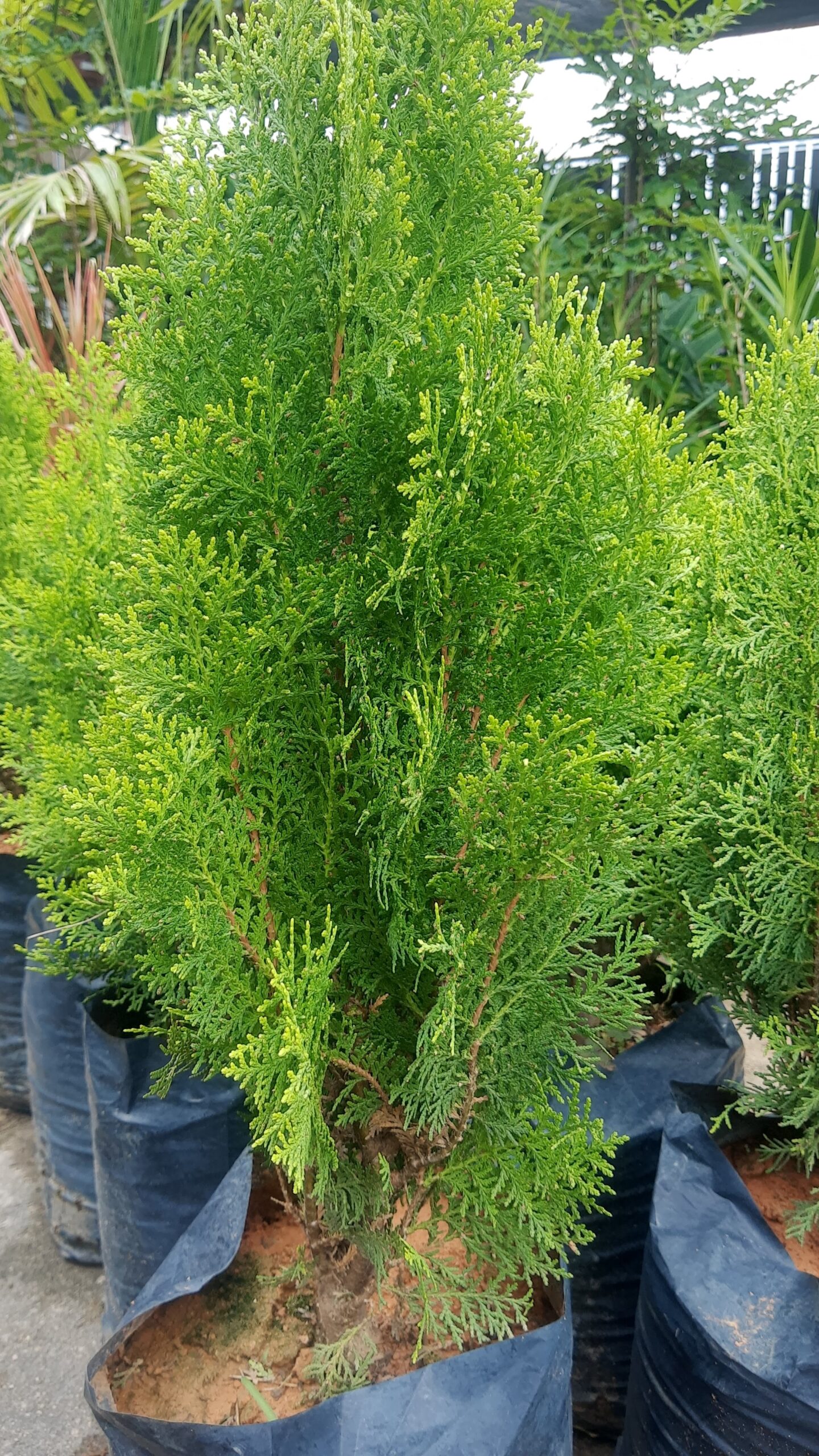 Elas gostam bastante de água, mas não precisa exagerar. A recomendação do teste do dedo ou do palito é válida também para ela, ou seja, sempre que o solo estiver seco é hora de regar sua planta. Elas possuem um crescimento lento nos primeiros anos, mas a taxa de crescimento vai aumentando com o passar do tempo, apesar disso, você pode cultivar em vasos, lembrando sempre de adaptá-lo para o tamanho da sua tuia.