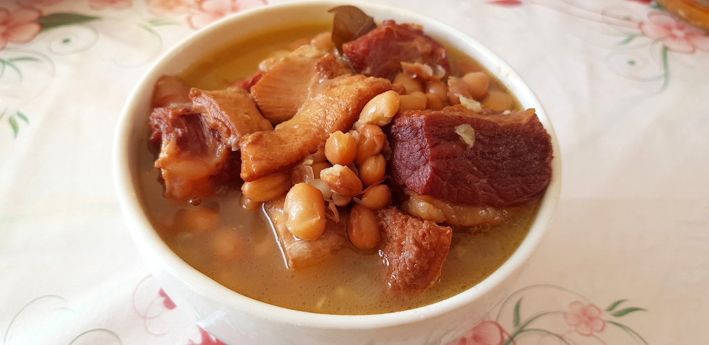 Feijão com tudo dentro: charque de costela, calabresa defumada, fato e osso do patinho