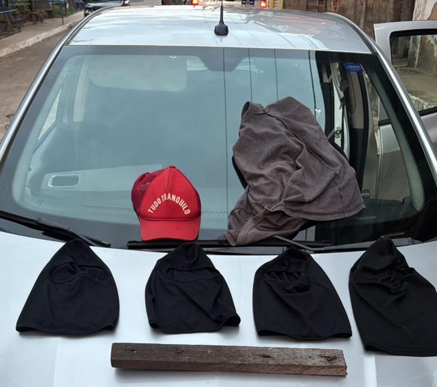 Após a abordagem, os policiais encontraram quatro balaclavas, uma barra de madeira com pregos e cinco celulares. Diante da coincidência das características descritas pelas vítimas, os suspeitos receberam voz de prisão e foram conduzidos até a Central de Flagrantes, no Tabuleiro do Martins.