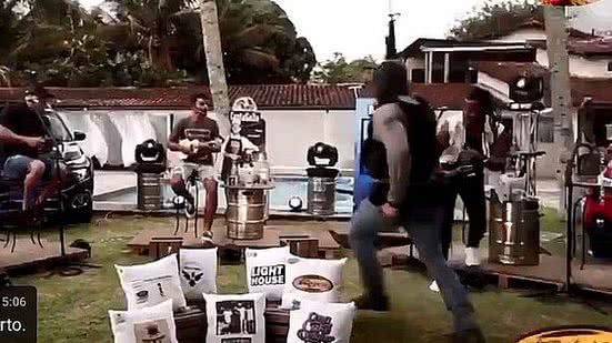 As imagens da live que circulam nas redes sociais mostram policiais encapuzados e armados correndo entre os integrantes da grupo de pagode, que deixam o local da apresentação agachados.