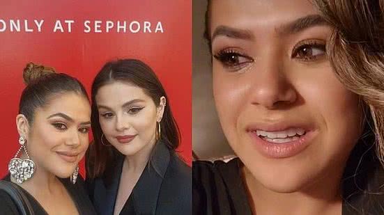Maisa esteve, nesta quarta-feira (29), em um evento para o lançamento da linha de batons de Selena, na Califórnia, nos Estados Unidos. "Só de lembrar, eu fico nervosa. Eu segurei muito [o choro]. Teve uma hora que achei que fosse me mijar de nervoso", relembrou ela nos Stories.