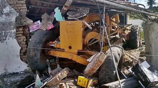 Uma motoniveladora, máquina usada para construção civil, invadiu e destruiu uma residência neste sábado (19), no município de Feira Grande, no interior do Estado. Apesar do susto, não houve registro de pessoas com ferimentos graves. A informação foi confirmada ao TNH1 pelo 3º Batalhão de Polícia Militar (3º BPM).