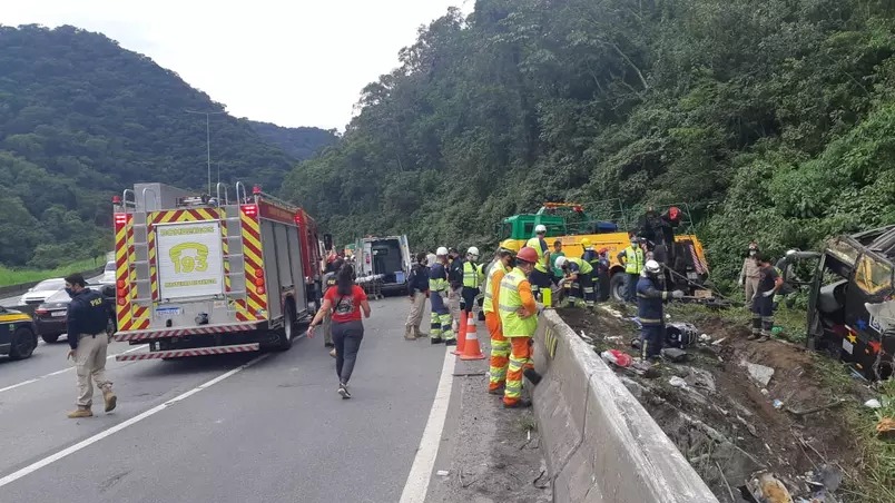 O veículo saiu da pista e tombou na margem da rodovia na altura do km 668, conhecido como Curva da Santa, quando descia a Serra do Mar. O Batalhão de Polícia Militar de Operações Aéreas (BPMOA) presta atendimento no local.