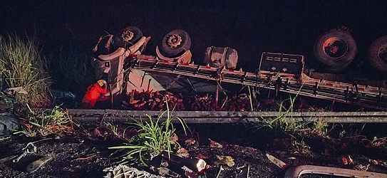 O Samu divulgou que o caminhoneiro de 47 anos ficou ferido depois de se envolver no tombamento na BR-101. Ao perceber o acidente, o condutor do segundo caminhão que passava pela pista teria reduzido a velocidade, momento em que teria sido atingido pelo terceiro veículo.