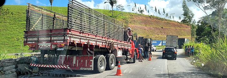 O acidente foi registrado pela Polícia Rodoviária Federal (PRF) próximo a uma curva e cones de sinalização foram colocados na rodovia. Apenas uma faixa foi liberada para o tráfego de veículos nesta manhã.
