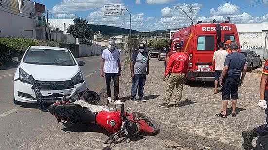 Um homem, de 40 anos, ficou ferido após um acidente entre uma motocicleta e um carro no começo da tarde deste sábado (15), em Santana do Ipanema, no Sertão de Alagoas.