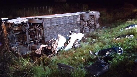 Ao menos oito viaturas de bombeiros militares e Samu foram encaminhadas para o local do acidente, o Km 215 da rodovia federal. Todos que sobreviveram estavam em um ônibus com placas de Porto Alegre (RS), que chegou a tombar às margens da BR-470 após a batida. O motorista de 53 anos e outros sete passageiros não se feriram, porém quatro pessoas tiveram de ser encaminhadas a hospitais da região.