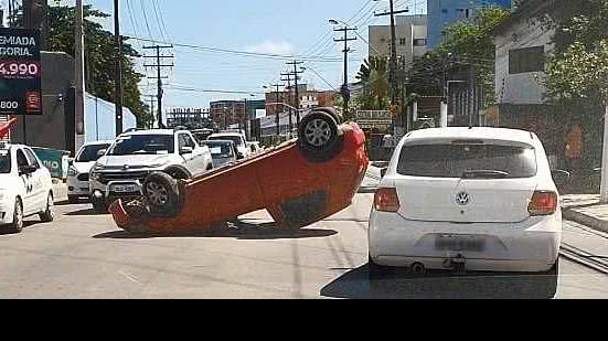 Um acidente envolvendo dois veículos de passeio causou o capotamento de um deles e deixou o trânsito lento, na manhã deste sábado (19), na Avenida Gustavo Paiva, no bairro de Mangabeiras, em Maceió.
