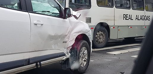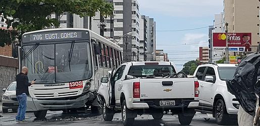 Um acidente entre três veículos fechou um cruzamento na Ponta Verde, na manhã desta terça (30). Um ônibus da Real Alagoas foi atingido, e o trânsito ficou parado na região.