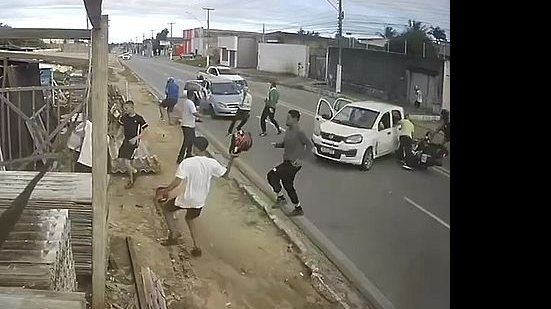 Os policiais militares informaram também que a equipe flagrou apenas o carro branco, de placa QLK8J76, no local do fato, mas conseguiram imagens do momento da colisão e da pancadaria (veja abaixo). "Uma das vítimas disse que alguns dos supostos autores haviam roubado sua corrente de cor prata com pingente, também de cor prata, além de um celular iPhone, com pequenas avarias e com capa protetora azul clara", mostrou trecho do relato da polícia.