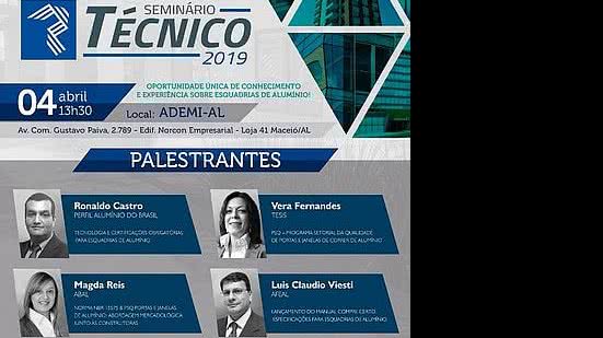 As inscrições já podem ser feitas através do site: https://doity.com.br/seminario-tecnico-esquadrias-de-aluminio. O valor custa R$ 40 para profissionais e R$ 20 para estudante.