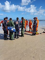 De acordo com os Bombeiros, quando a equipe chegou ao local observou que surfistas trouxeram a vítima em cima de uma prancha.