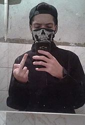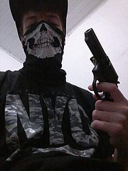 Com o nome de Guilherme Alan, cerca de 30 fotos do suspeito armado e com utensílios, como a máscara de caveira, que ele teria usado na invasão da escola por volta das 9h30 de hoje, foram colocadas no álbum da rede social. Entre elas, o adolescente aparece com um revólver apontado para a câmera.